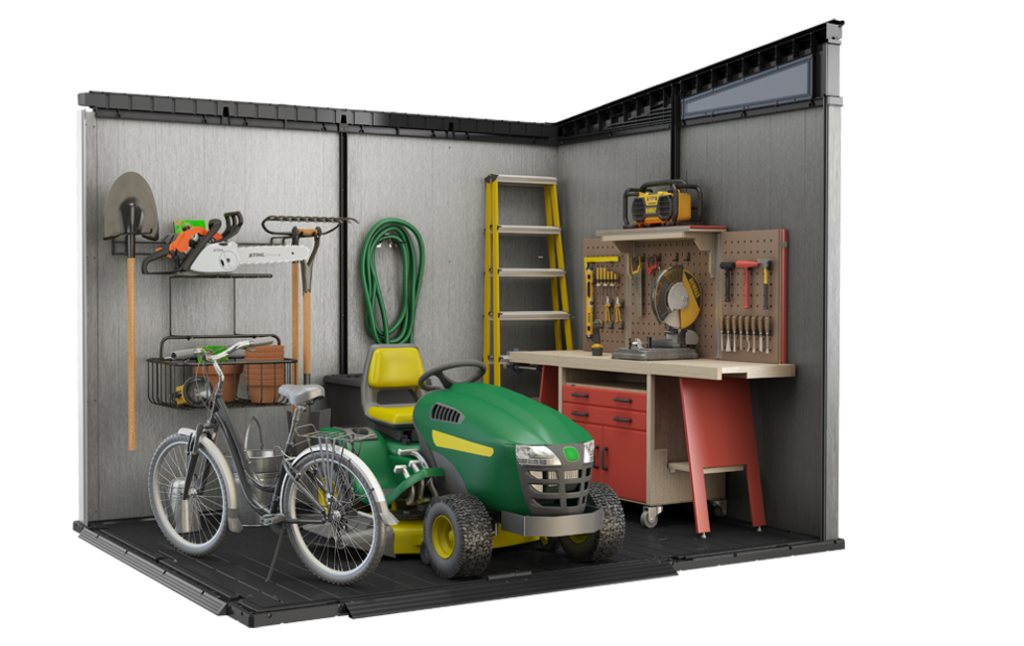 - Las paredes DUOTECH™ se pueden pintar y taladrar, lo que permite personalizar completamente el cobertizo