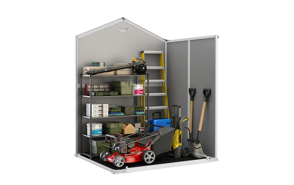 El cobertizo Manor 6×5 es un cobertizo práctico y atractivo para mantener su patio limpio y ordenado. Tiene paredes dobles resistentes a la intemperie, un suelo resistente y una ventana fija para entrada de luz natural. También cuenta con puertas dobles para un fácil acceso a los objetos almacenados y un sistema de bloqueo para mayor seguridad.