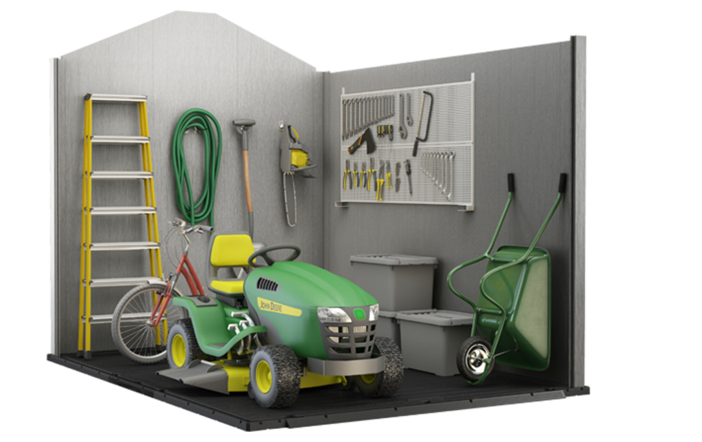 - Suelo de gran calidad y resistencia que mantiene la humedad y la lluvia alejados de los artículos del interior